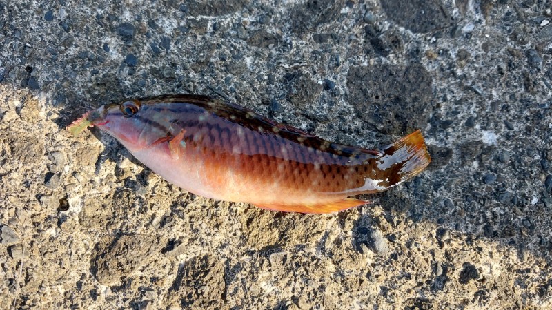 堤防の際に仕掛けを落としてみるとすぐにアタリがあるものの、釣れるのはフグやベラばかりでした。