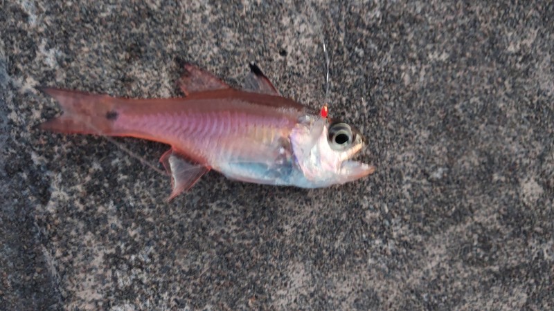 薄暗くなってから夜行性のネンブツダイが釣れました。